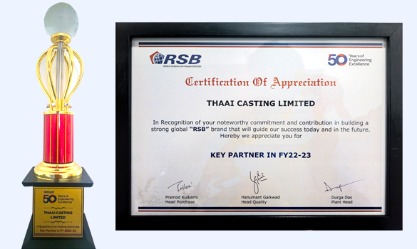 Awards RSB – Key Partner in FY22-23 Business Innovation Summit – 2023 M/s HANON SYSTEMS – Best Quality Award 2021 M/s TRIN – Best QCD [Quality, Cost & Delivery] Award M/s STANADYNE – Appreciation Award M/s WOOSU – Appreciation Award